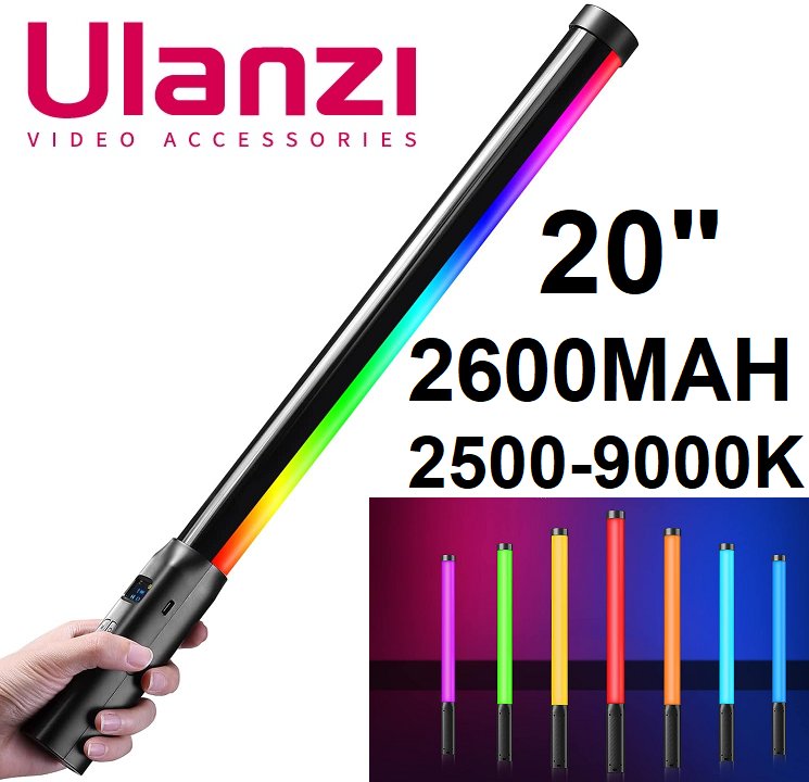 ULANZI RGB LED RECHARGEABLE TYPE-C DIMMABLE LIGHT WAND STICK WITH MULTIPLE MODES - 20", 2600MAH, 2500k - 9000K, 7.5W - BLACK (MODEL: VL119)