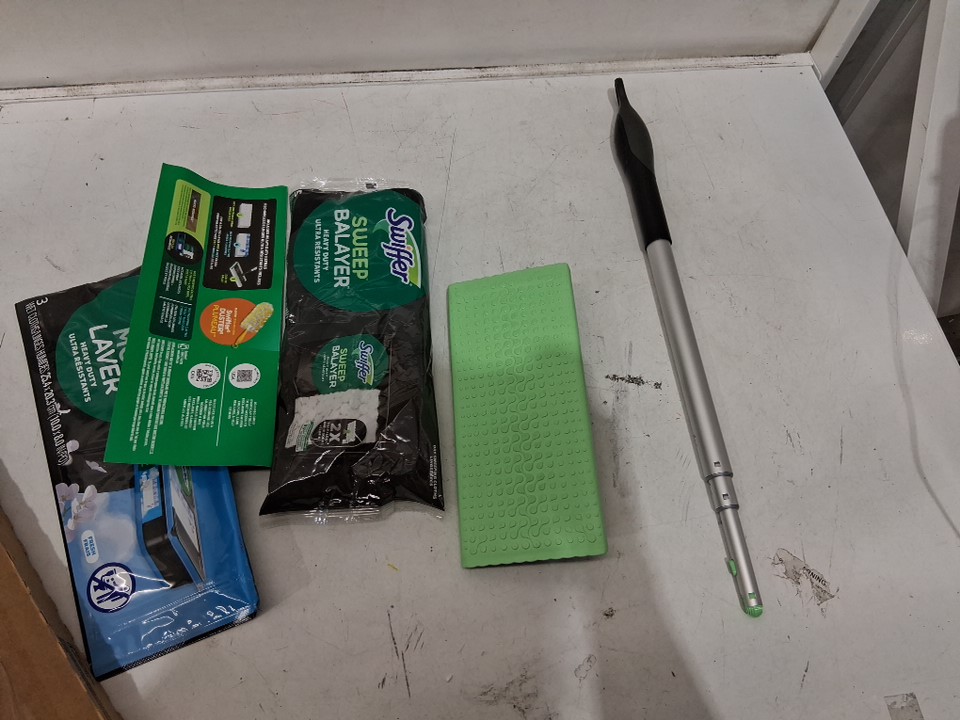 Swiffer 2-in-1 Sweep and Mop Deluxe Multi surface Mopping and Sweeping Kit with replacement pads (6 wet/ 5 dry) - green/black