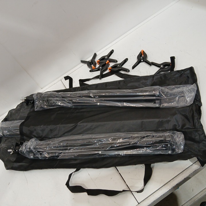 EMART Adjustable Background Stand Support Kit with 2 Crossbars, 8 Backdrop Clamps, 2 Sandbags and Carrying Bag - 10ft x 7.8ft - black - (model:em-bs012430)