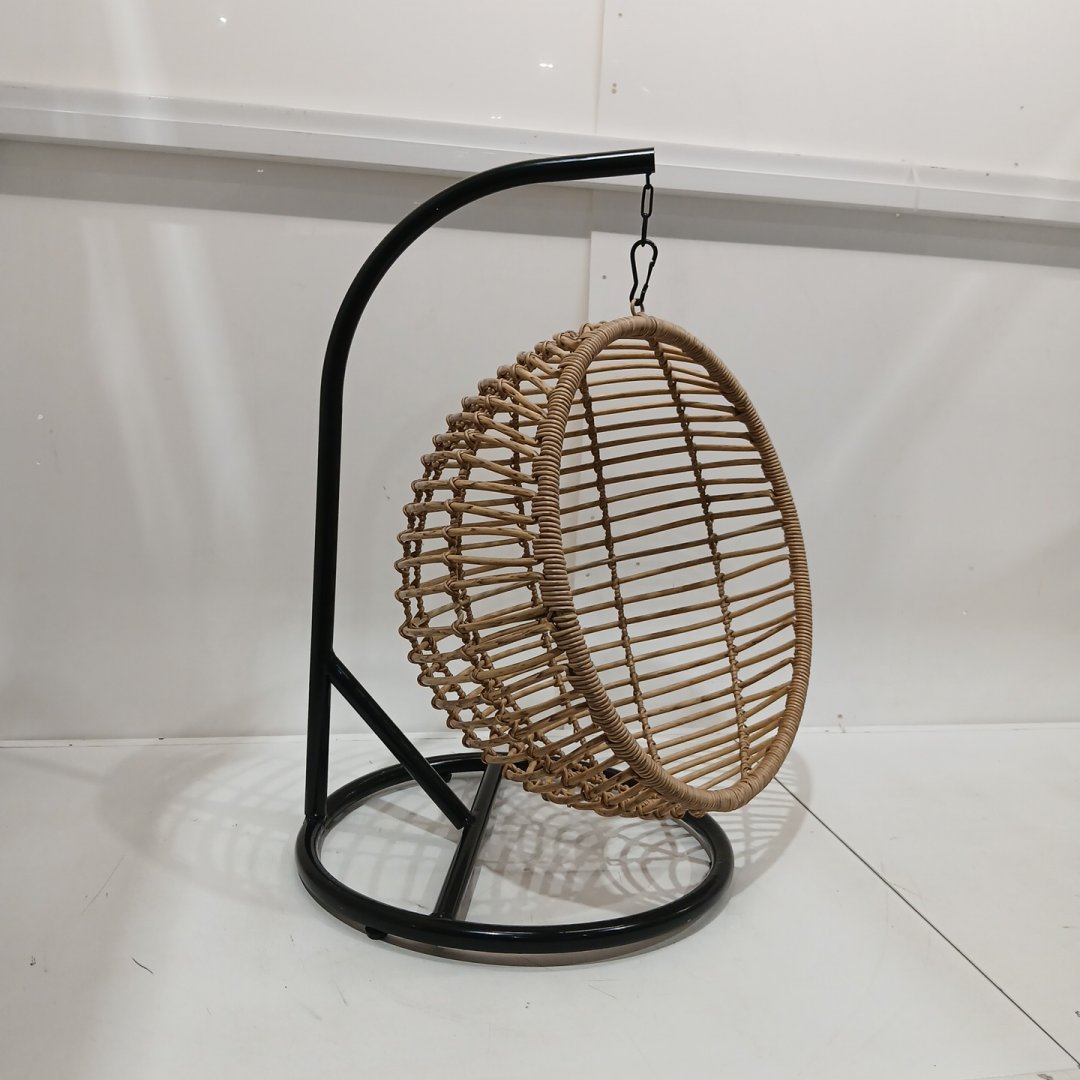 SMALL SWINGING BASKET EGG CHAIR PET BED FOR INDOORS & OUTDOORS - WICKER, BLACK