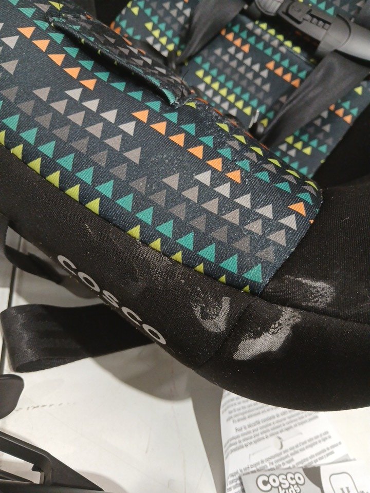 - stains on rim of seat, as well crumbs and residue in the creases of seat. See photos