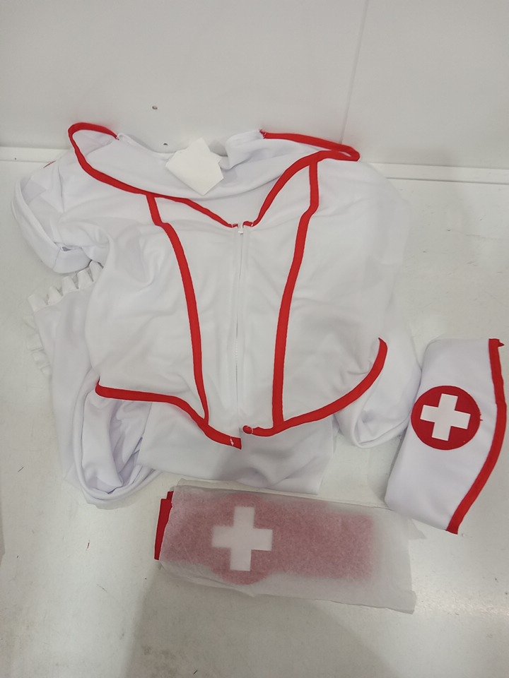 3PC WOMEN'S CALIFORNIA COSTUMES NURSE HEART BREAKER COSTUME WITH DRESS, HAT AND BELT - small - WHITE/RED