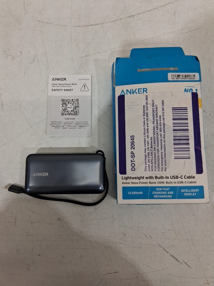 Anker Nano Power Bank Portable Charger with Built-in USB-C Cable - 10,000mAh - 30w max output - black