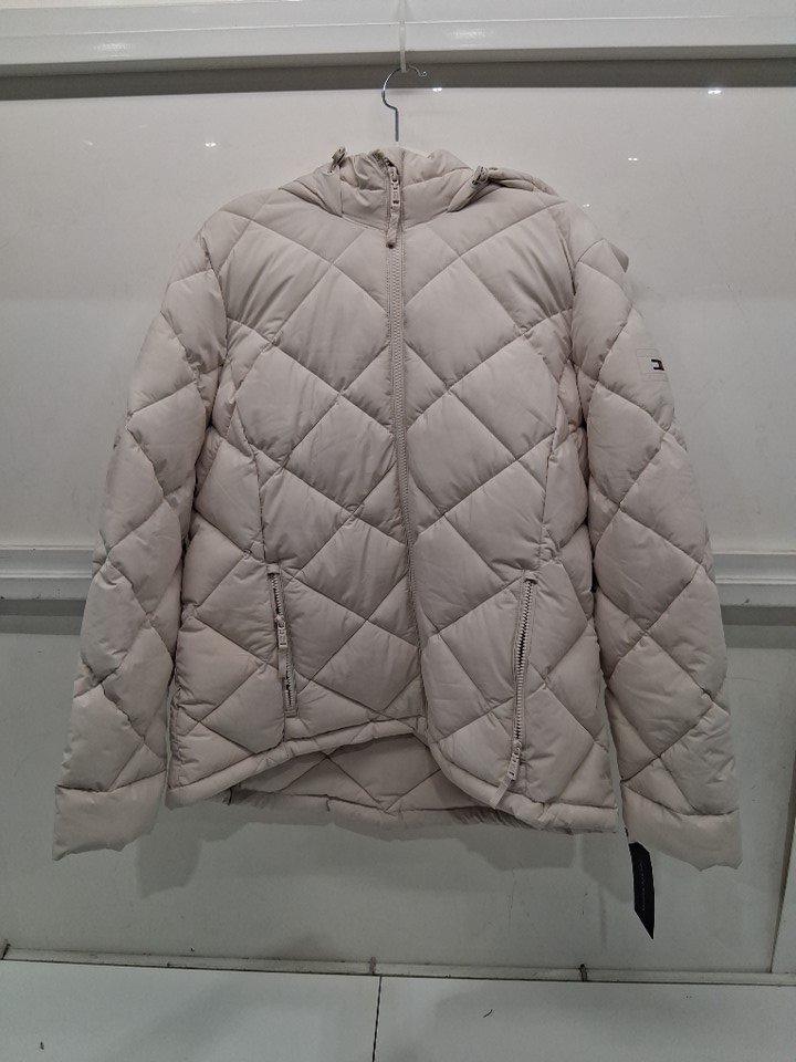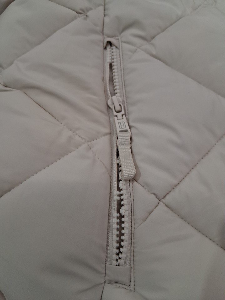 Please note that the right hand pocket zipper is damaged, but the jacket otherwise appears brand new (see photos)