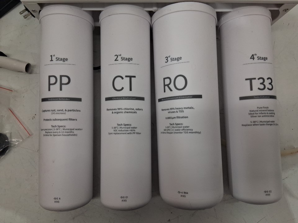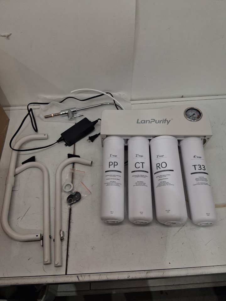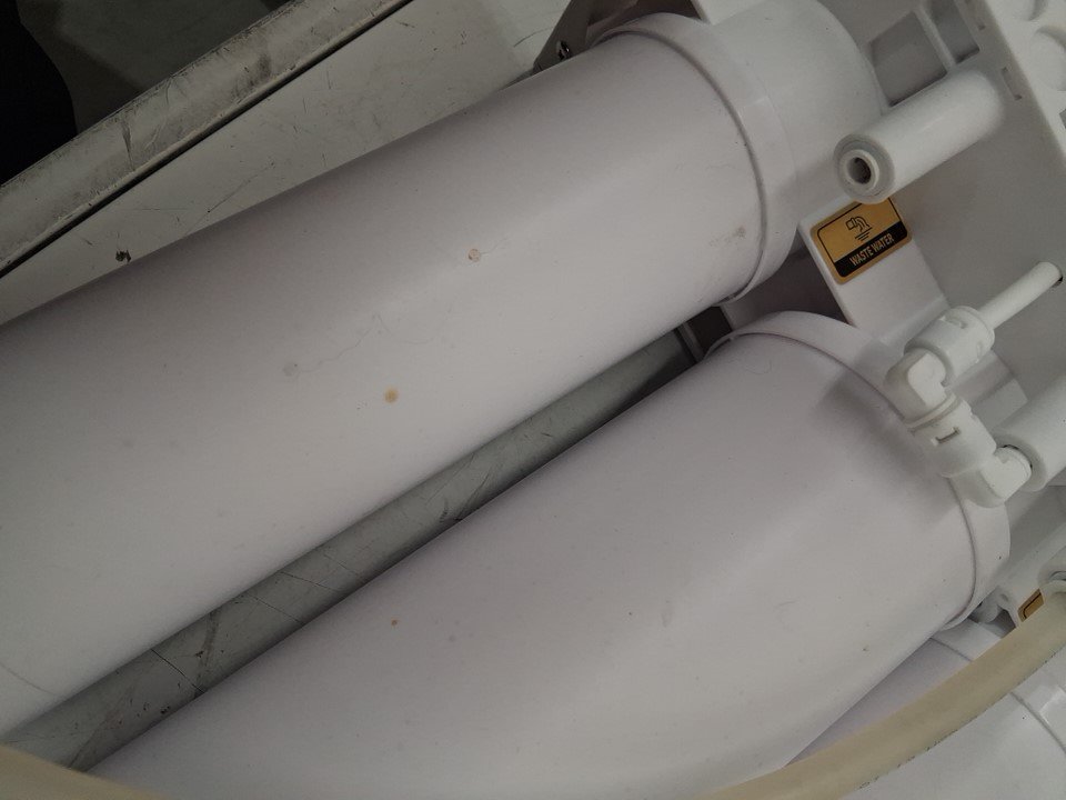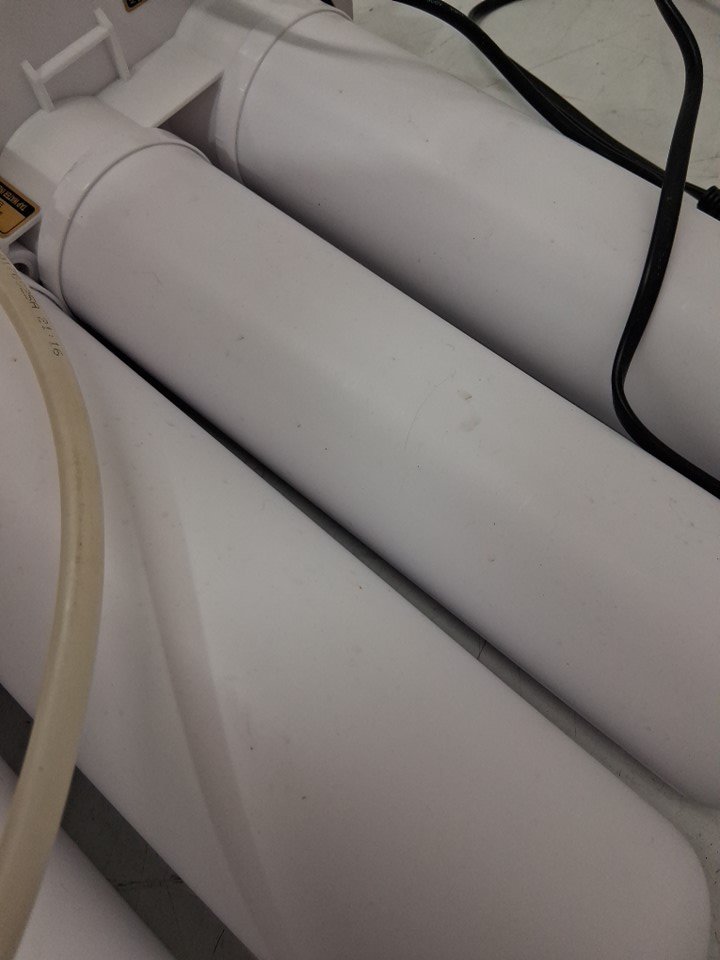 filter system has water spots and stains on it. Filter tanks still have some water inside. Has been tested for power