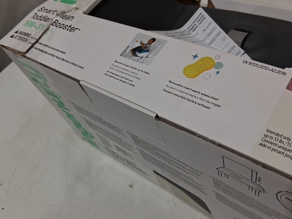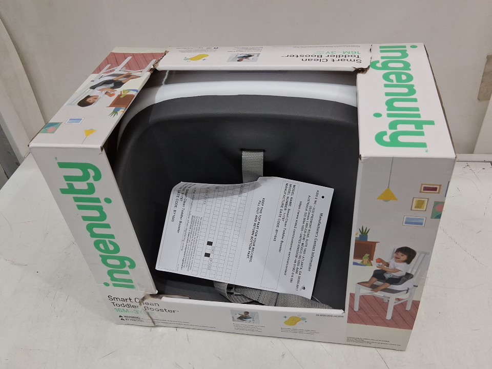 INGENUITY SMARTCLEAN TODDLER BOOSTER SEAT - 33LBS CAPACITY - WHITE/SLATE GREY - (MODEL: 11786/11787))