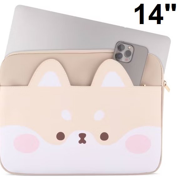 Mimicoco Shiba Character Pocket Laptop Sleeve case - fits up to 14" laptops - mutli-colour