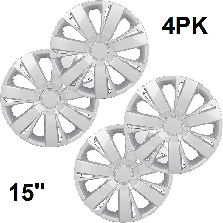 ctcauto premium snap on hub cap covers - 15" - universal fit - silver