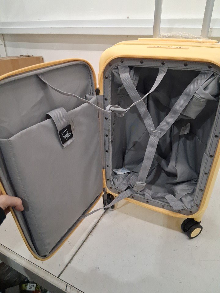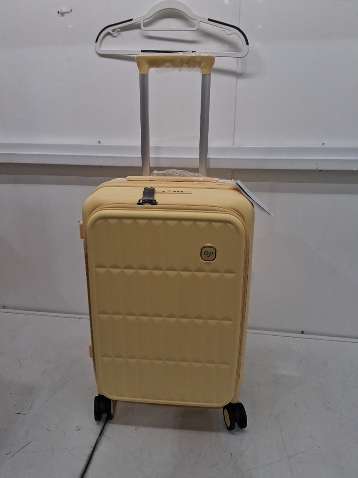 aji expanding hard-shell luggage suitcase with wheels and telescopic handle - 20" - cheese yellow (model: ka7091)