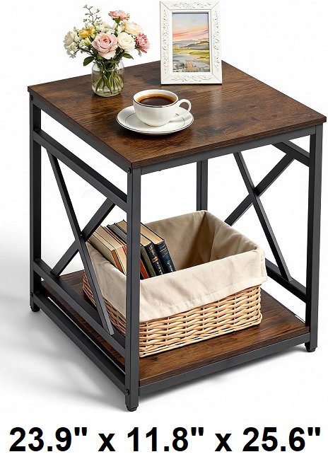 2-Tier Square Side/End Table with open storage and metal frame - 23.9" x 11.8" x 25.6" - brown/black - (model: zh639)