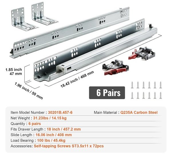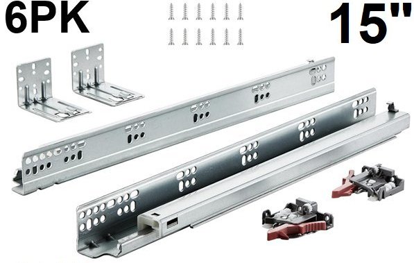 6PK heavy duty extension drawer slides - 15" - silver/grey (model:30201b.381-6)