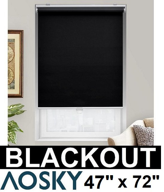 aosky blackout cordless roller shades with v protection - 47" x 72" - black