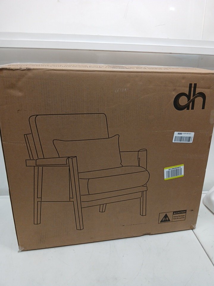 Dailyhome Accent Chair Mid-Century Modern with Lumbar Pillow Cozy Living Room Chair with Wooden Oversized Armchair with Cushion - beige/brown (model: DHCHAIR-0005-CA)