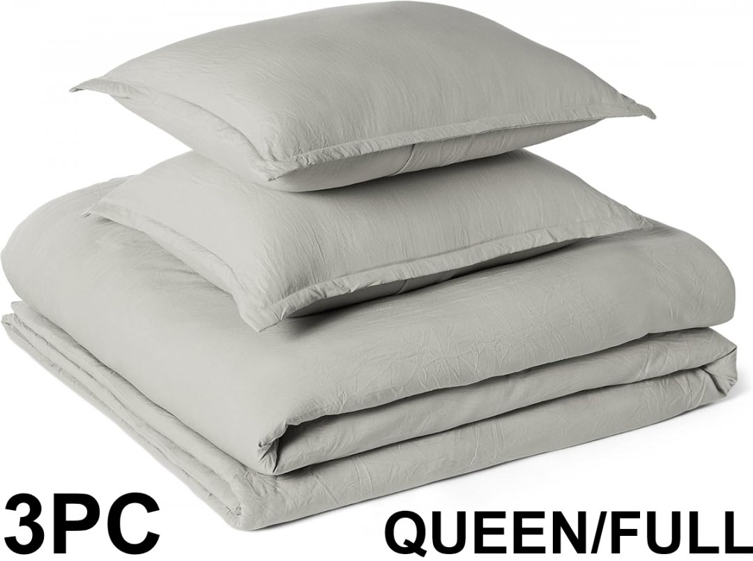 3pc Amazon Basics Brushed Microfiber Comforter Set - queen/full - 90" x 90" - light grey