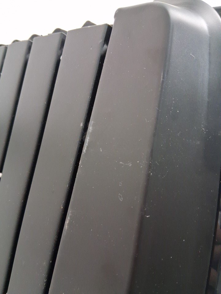 Tested for power, there is tape on the cord for heater, some scratches on heater and the front and back of heater appear broken but could be fixed back together, see photos.