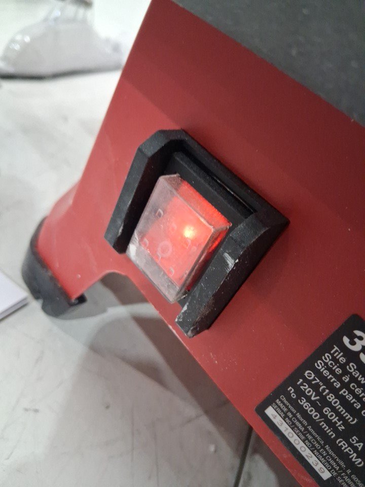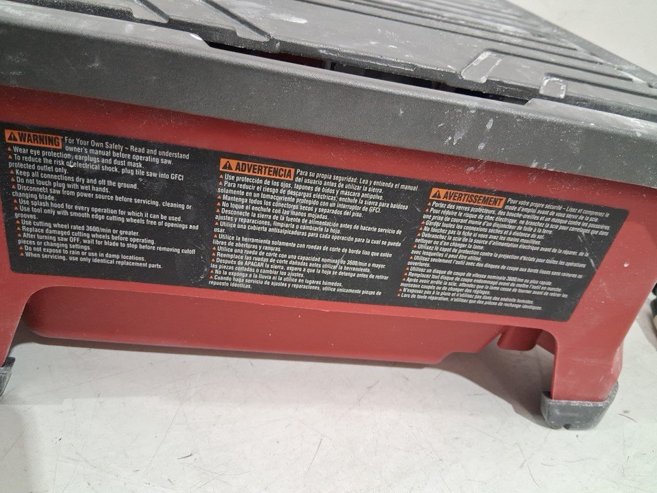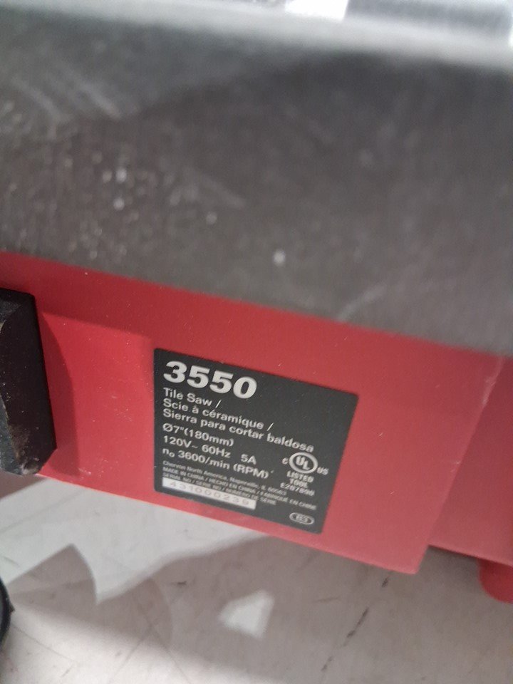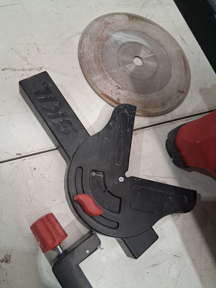 Tested for power, there are white marks on saw and attachments from use also missing side extension, see photos.
