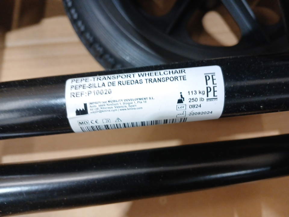 pepe transport foldable wheel chair with foot rests seatbelt wide wheels - UP TO 250LBS - 24'' - black (model:p10020)