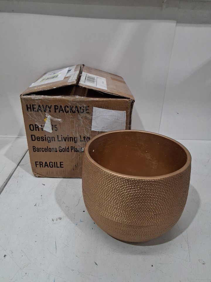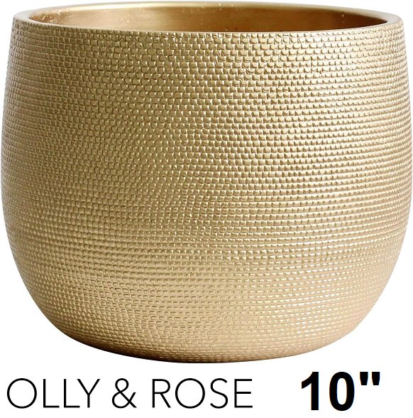 Olly & Rose textured patterned Barcelona ceramic planter pot - xl - 10" - gold - (modle: or10075)