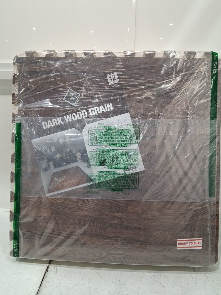 12pc sorbus dark wood grain interlocking floor mat - 24" x 24" - light mahogany (model: MAT-WOODMGA12)