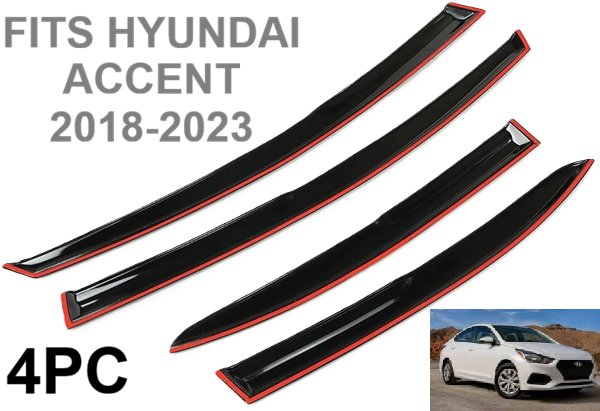4PC WINDOW VISOR GUARD COVER - FITS HYUNDAI ACCENT 2018-2023 - BLACK/RED