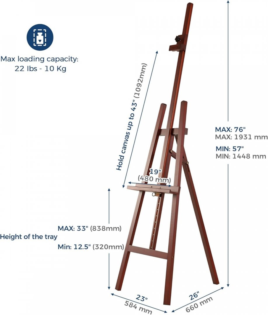 A-frame Adjustable Studio Easel - 76" - BROWN - (MODEL: ELAF-W01DN-V)