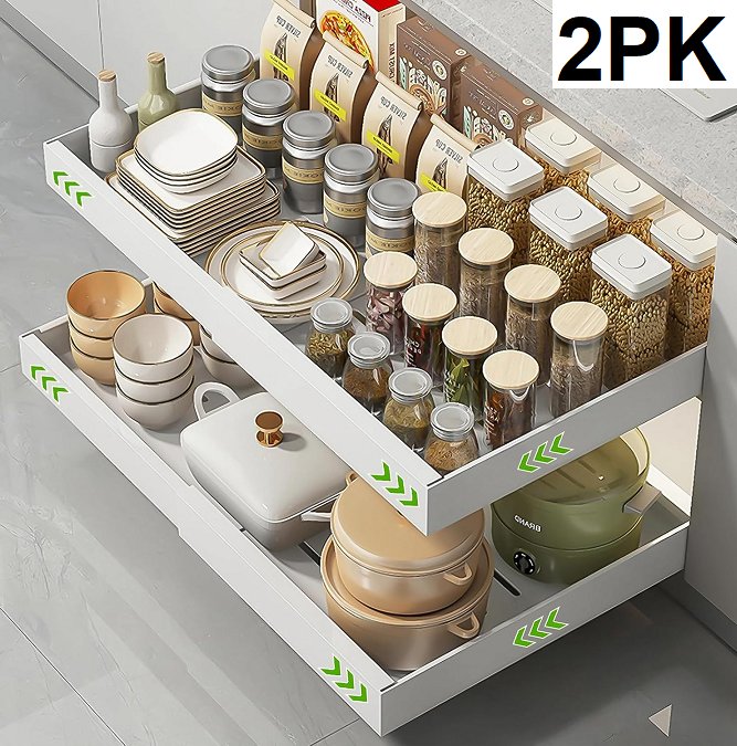 2pk fufeisi heavy duty slide out cabinet organizer drawers - 21.3" x 16.7" x 2.9" - white