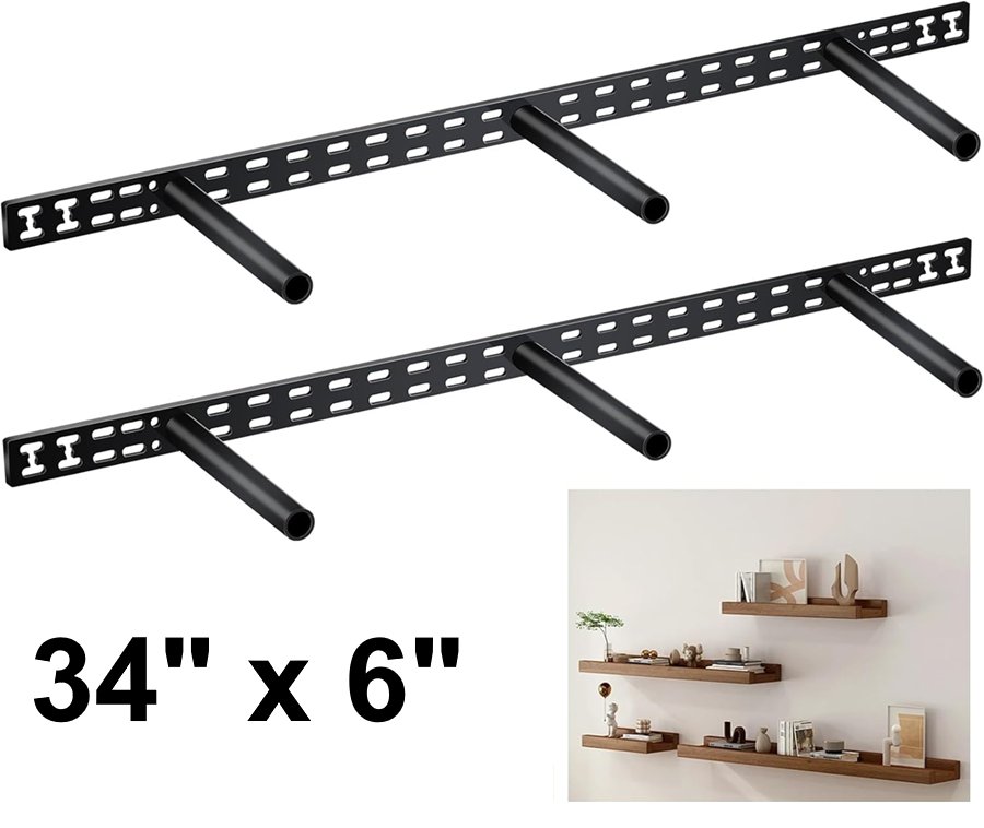 Floating Shelf Bracket with no tools included - 34" x 6" x 1" - BLACK