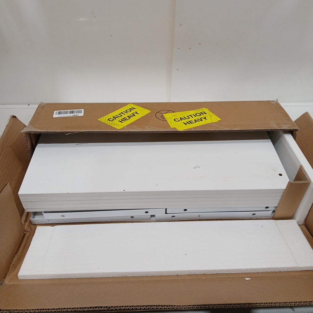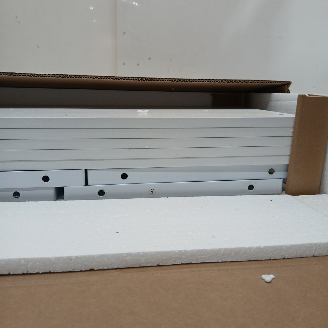 Item has scuffs present, as well as assembly marks. Appears to be missing 1 White Wood Panel.
