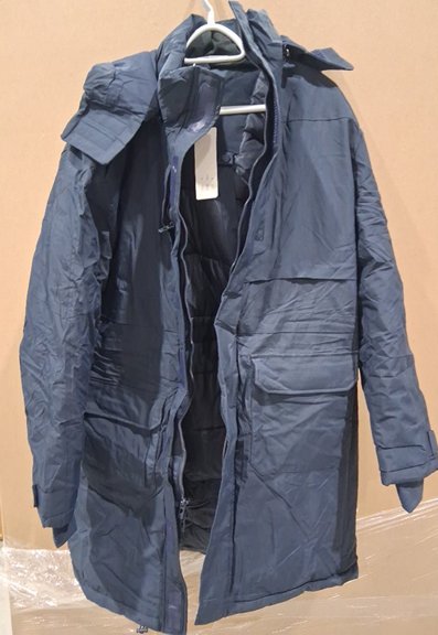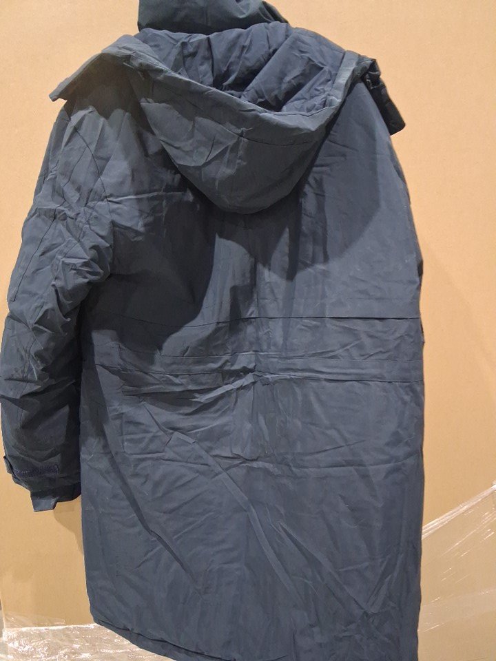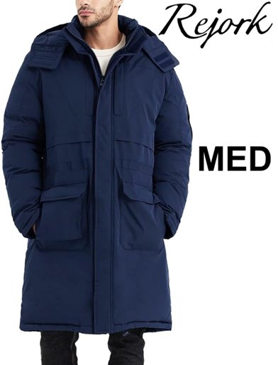 MENS Rejork Water-resistant Extra Long puff jacket with pockets and hood- medium- navy