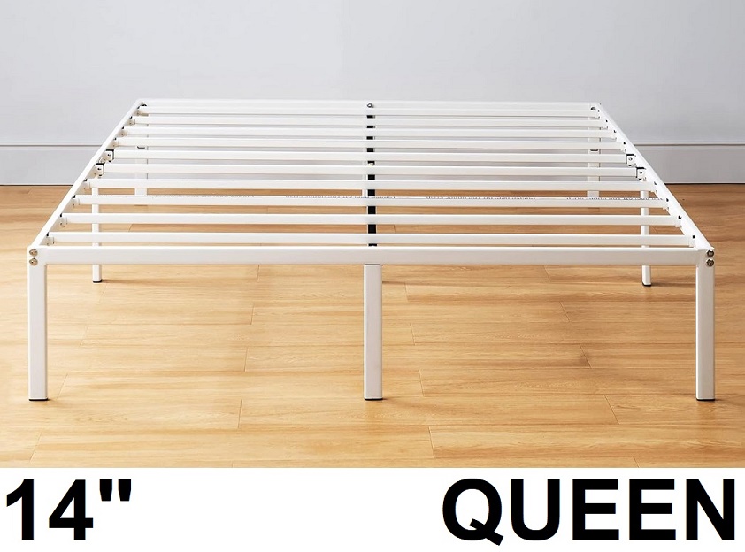 Metal Platform Bed Frame - 14" Height - Queen - White (Model: AM01-KJ03-12Q-W)