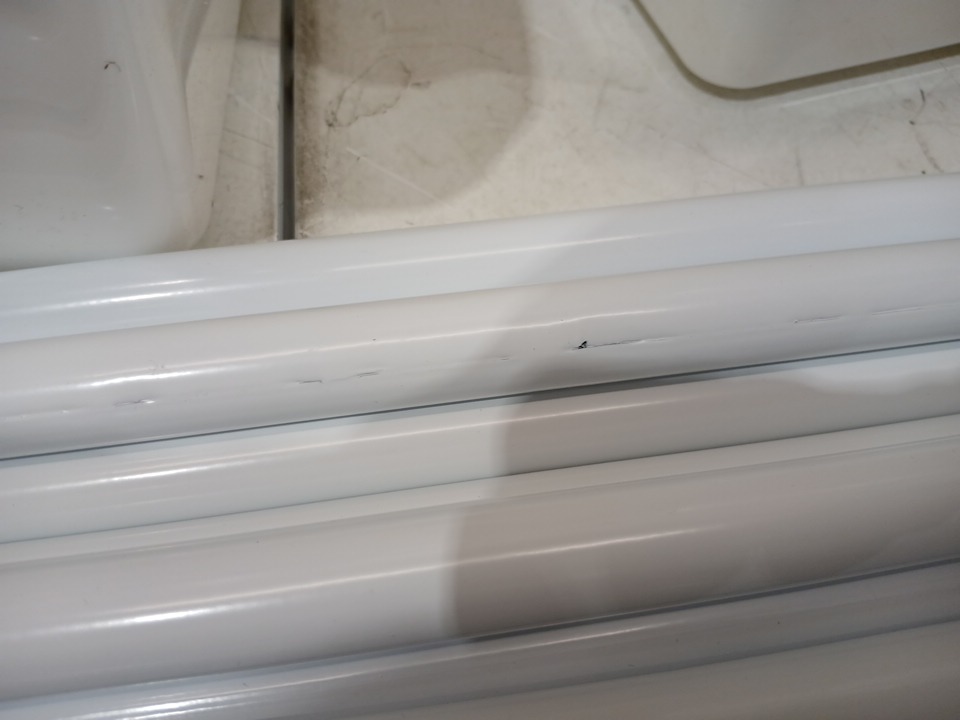 there is some light scuffing/scratching & minor chips present, suggesting previous installation. one or two poles have minor dents