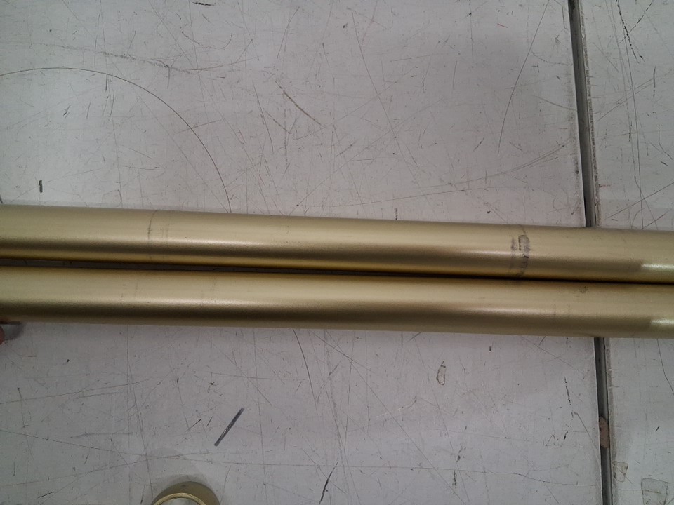 There are black scuff marks on both of the rods from previous use, the scuff marks will be hidden once a curtain is put on.