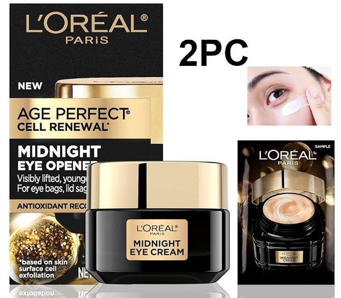 2PC L'Oreal Paris Age Perfect Cell Renewal Midnight Eye Opener with midnight cream sampler - 14G and 48g