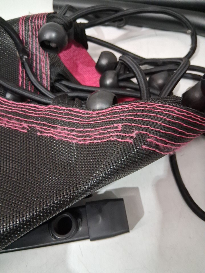 item has scratch marks / loose threads / one of the loops have broken all indicating prior use