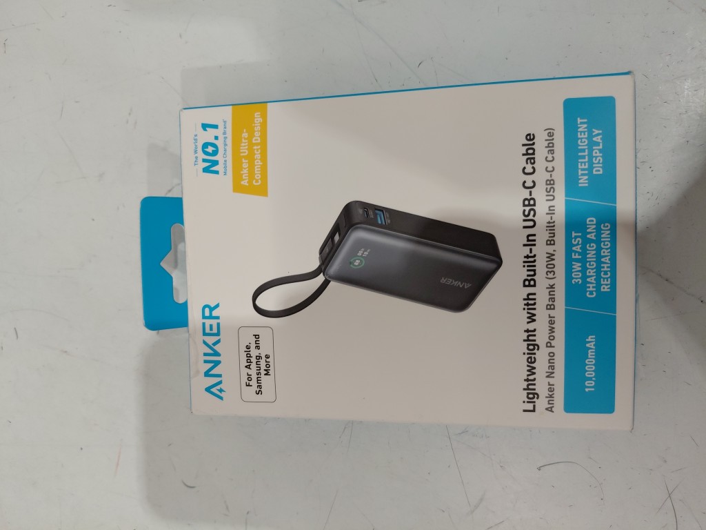 Anker Nano Portable Power Bank with Built-in USB-C Cable - 10000mAh, PD 30W Max Output with 1 USB-C, 1 USB-A - black (model: a1259)