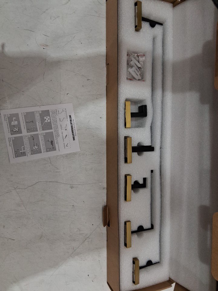5PC TURS STAINLESS STEEL BATHROOM HARDWARE SET - 24" TOWEL BAR - Towel Bar, Hand Towel Holder, Toilet Paper Holder and 2 Towel Hooks- BLACK/GOLD
