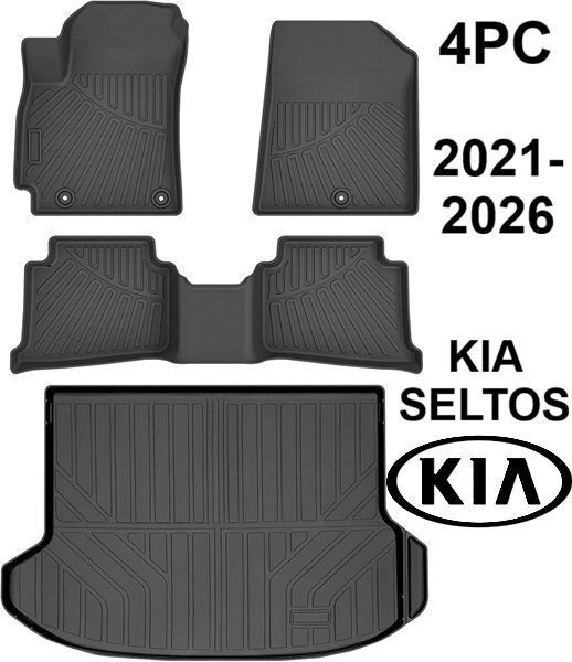 4pc All Weather Trunk Car Carpet Rubber Mat - Compatible with 2021-2026 Kia Seltos