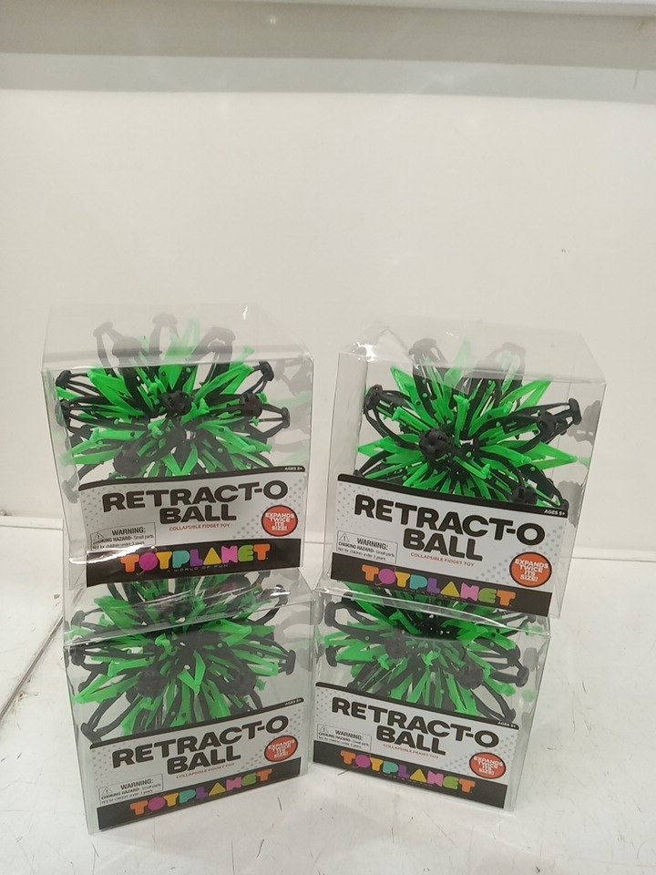 4 Toy Planet Retract-O Ball Collapsible Fidget Toy - GREEN/BLACK (MODEL:93253)