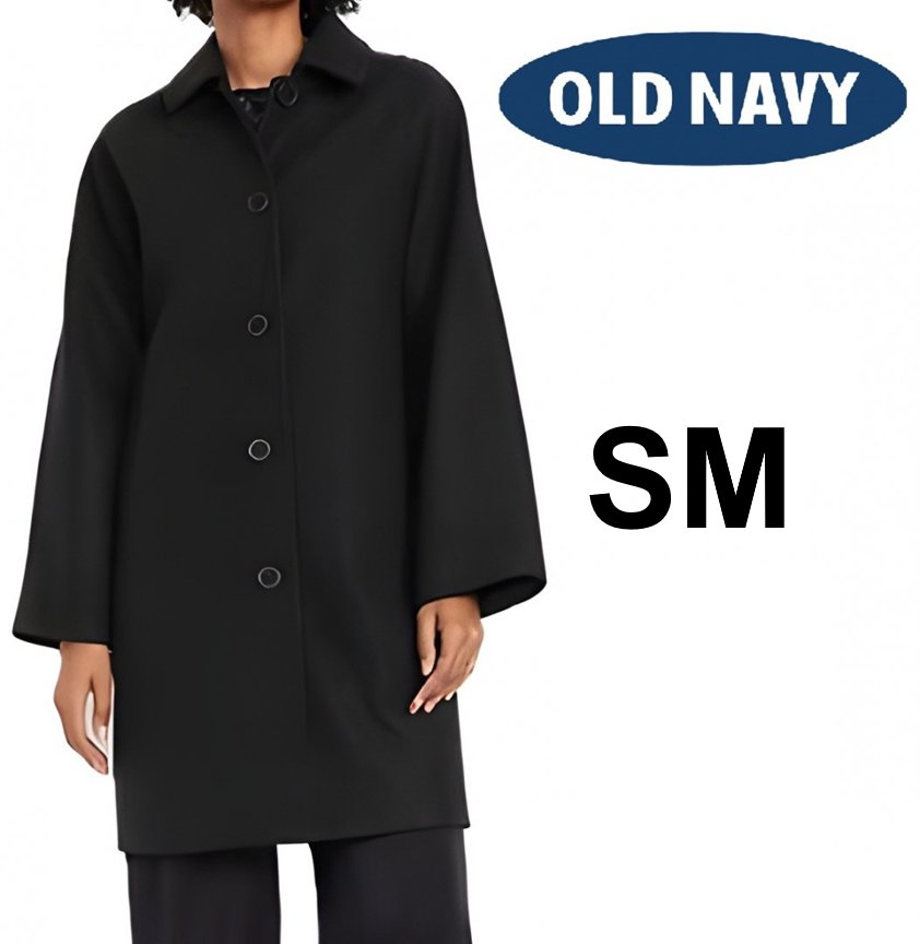 Women's Old Navy Relaxed Button-Front Mac Coat - Small - Black (Style: 790479-02-4)