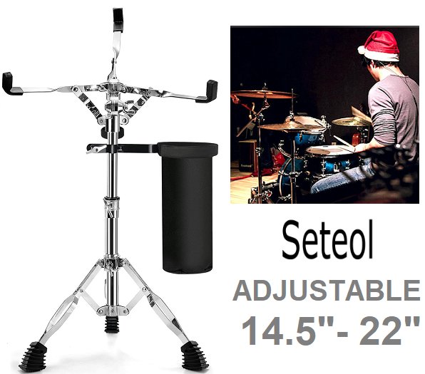 SETEOL Snare Drum Stand with Drum Sticks Holder - ADJUSTABLE HEIGHT 14.5"-22" - SILVER