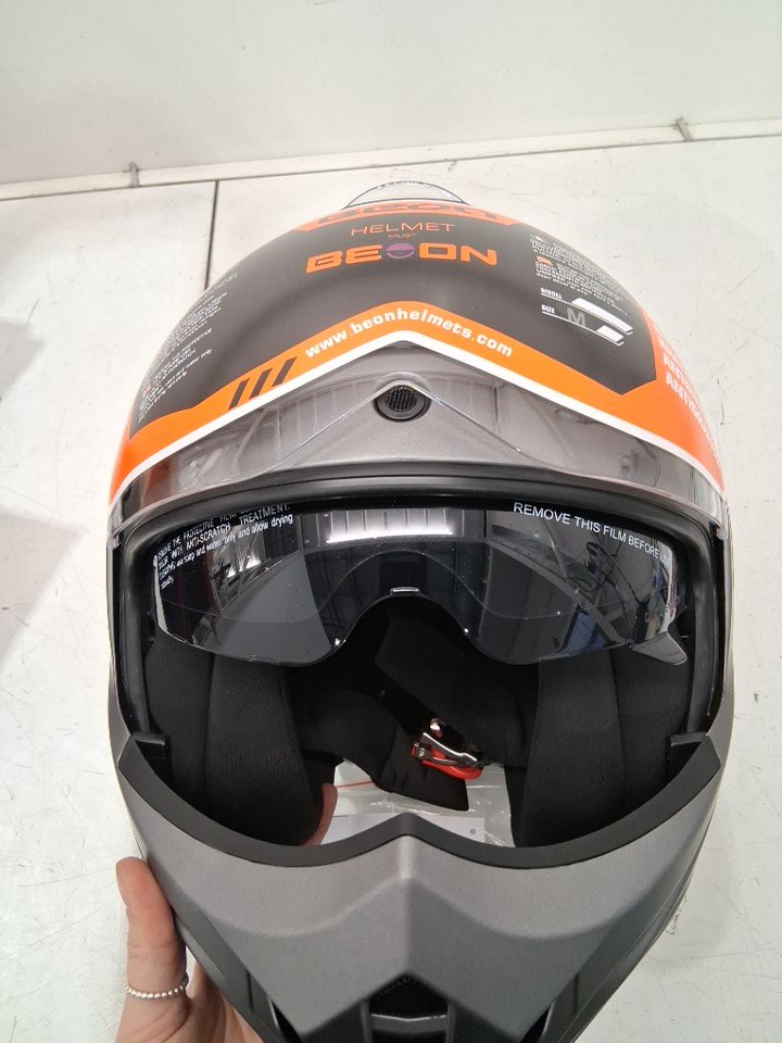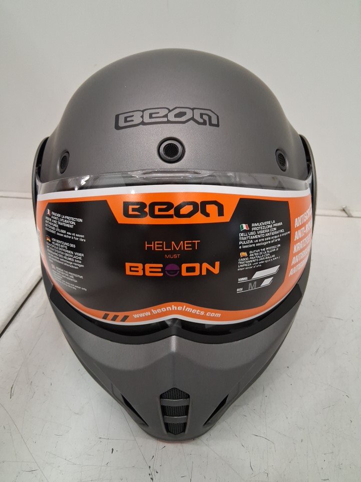 UNISEX ADULT BEON Full Face Motorcycle Helmet, 180° Reversible Chin Guard Modular with Anti-Fog Dual Visor - MEDIUM - TITANIUM GREY - (MODEL:B-707)