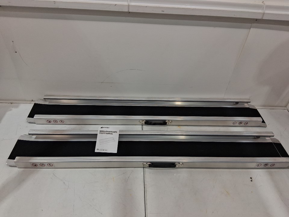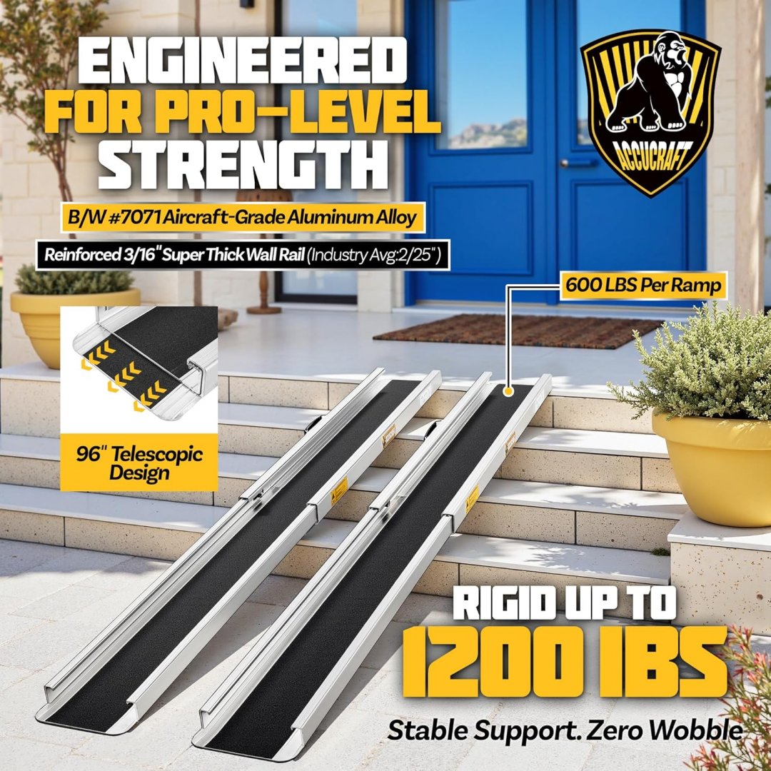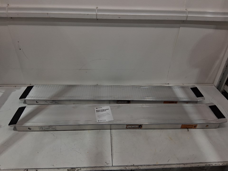 2pk ACCUCRAFT Portable Adjustable telescopic wheelchair mobility ramps with handles - 8ft - 1200lb max - silver/black
