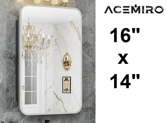 ACEMIRO Bathroom Medicine Cabinet with Mirror - 24" x 16" - silver - (model: metals-1624)