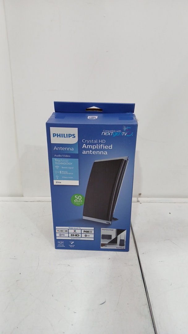 Philips Crystal Amplified Indoor TV Antenna, Extendable Dipole Rabbit Ears, 4K 1080P VHF UHF, Long Range, Amplifier Signal Booster, Digital HDTV Antenna, Smart TV Compatible, (MODEL: SDV3237N/27)