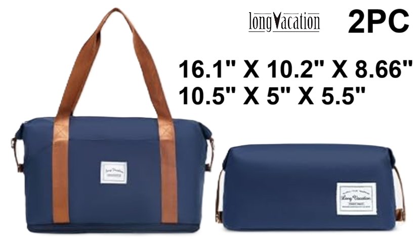 2pc long vacation travel duffle bag and toiletry bag - 16.1"x10.2"x8.66"/10.5"x5"x5.5" - blue