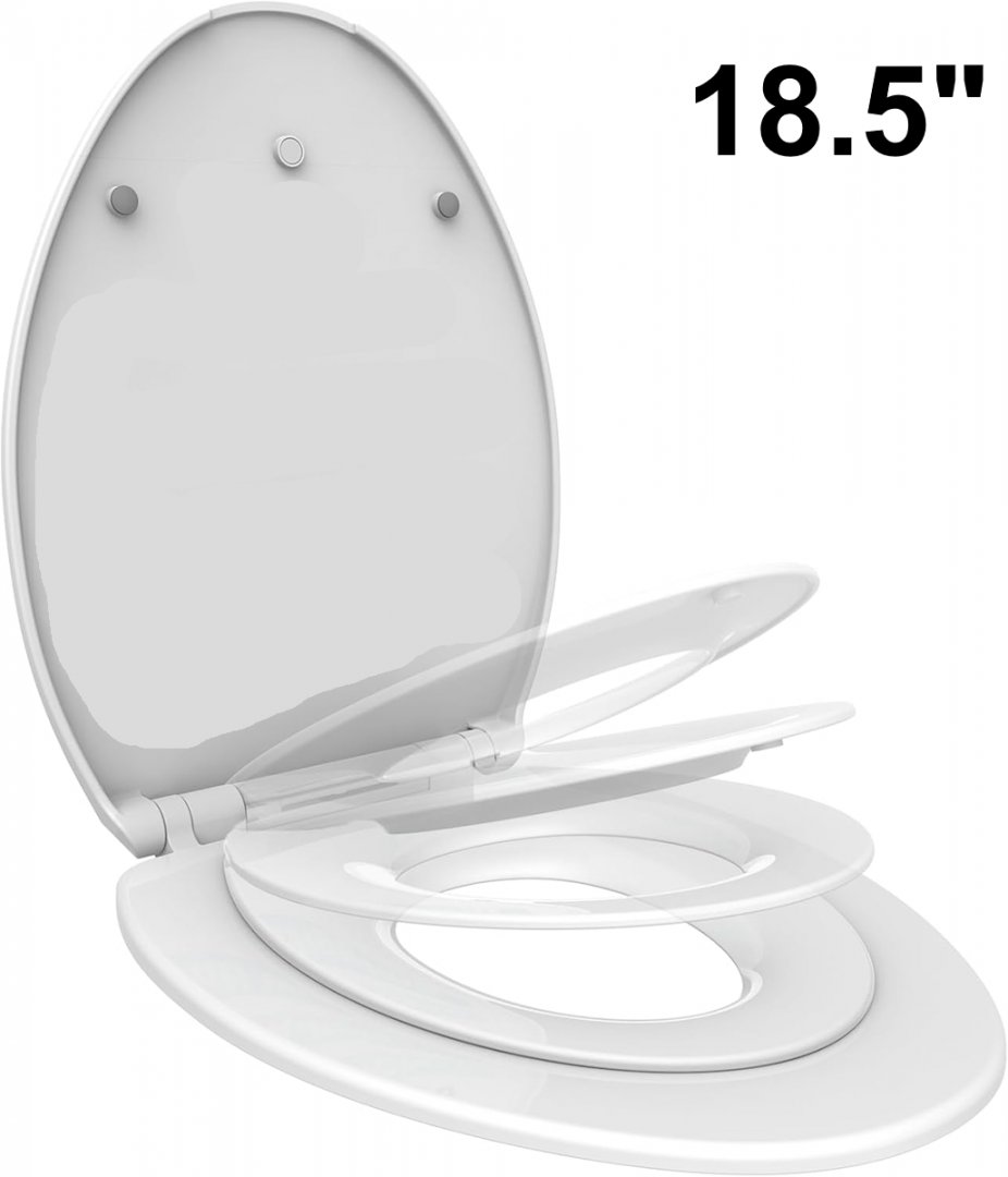 1M Elongated toilet seat with built in toddler seat and slow close - 18.5" - white (Model: ts001)