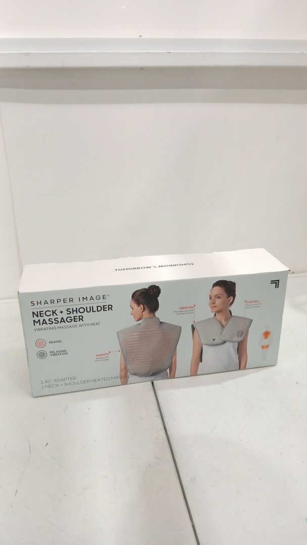 SHARPER IMAGE HEATED NECK AND SHOULDER vibrating MASSAGER - 30.7" x 18.9" - grey