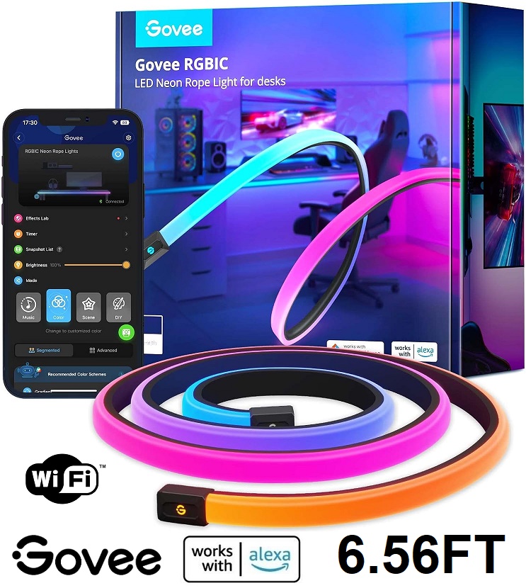Govee RGBIC Gaming Smart Neon Rope Lights with App Controls - Works with Alexa and google home - 6.56ft (Model: H61C2)