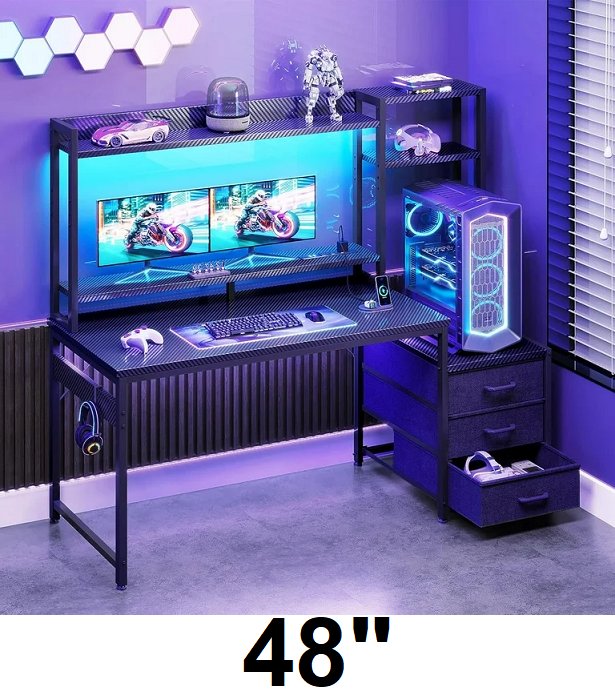 Casaottima Gaming Hutch Computer Desk with USB Ports & LED Lights - 48" - black