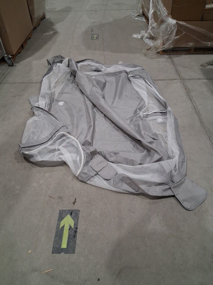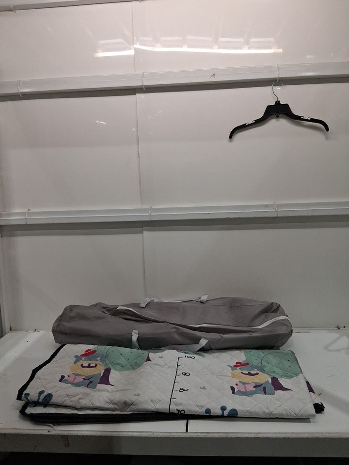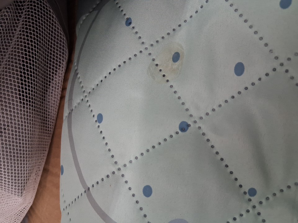 Some dirt and dust on the playpen fabric. There is a stain present on the playpen mat.